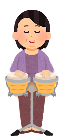 ラテン音楽に欠かせない打楽器ですが、どんな音楽にも合います。大小の太鼓で音色を作ります。脳トレ・アンチエイジングにも役立ちます。