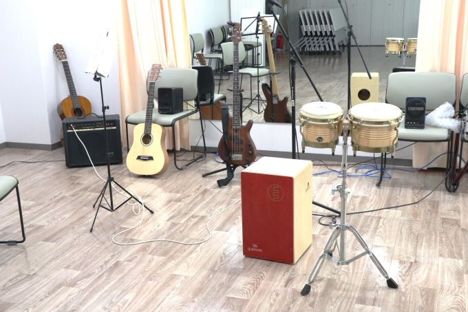 こちらの教室では自分のペースで、さまざまな楽器の仲間と一緒にワイワイ言いながら練習が出来ます。周りの人たちがみんな初心者なので気持ちが分かり合えるので楽しいですよ。