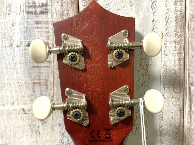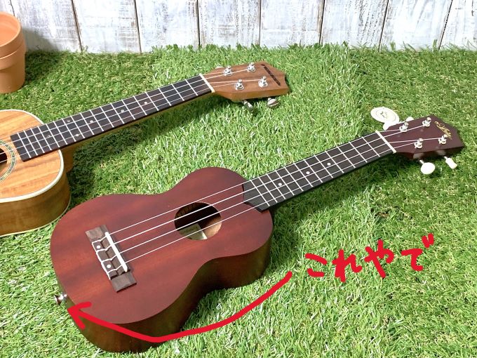ただしギアペグにも欠点があって、少ーし重くなるんですね。しかしそれを差し引いてもギアペグにしておくべき、と私は考えています。それほどにチューニングしにくいのです。その点からもこのウクレレは良いと言えます。これまたプラスポイントです。