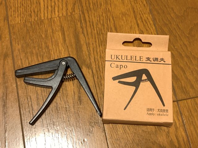 という訳で一番使いやすいと思うのは、このケースに入っているやつです。もしくはこの形のモノです。一目でわかる中華製品ですが、私が購入したサイトでは400円程でした。安くて助かります。ウクレレのカポでお悩みの方はご参考にして下さいね。